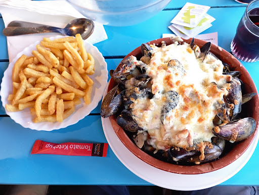 Service was fine but for the popularity of the place and queue outside I was expecting a lot more from the food. The mussels were very small and some were quite overcooked. I had the marineire sauce and it was very disappointing. There were plenty of herbs on top but hardly any sauce which is usually a highlight of this style of mussels. Because they were so dry with little liquid around them and in a flat bowl they went cold very quickly. I saw the lasagne and pizza go out and they looked a much better choice which is strange for a restaurant that promotes it's mussel dishes on the front page...