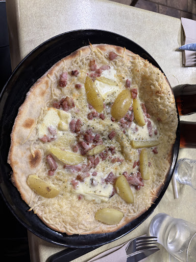 Cuisine : j’ai commandé une pizza montagnarde, j’ai eu une pizza à l’emmental ! Ils devraient ajouté un nouveau fromage au lieu de blindé l’emmental. La pâte à pizza était toute fine… donc cramé sur le dessous. Les crêpes Sarrazin aux chorizo… n’en parlons pas ! La photo parlera d’elle même. Un ami a pris un confit de canard, les sauces proposées sont ketchup, mayo ou une sauce piquante de pizza …