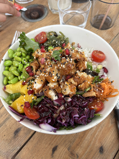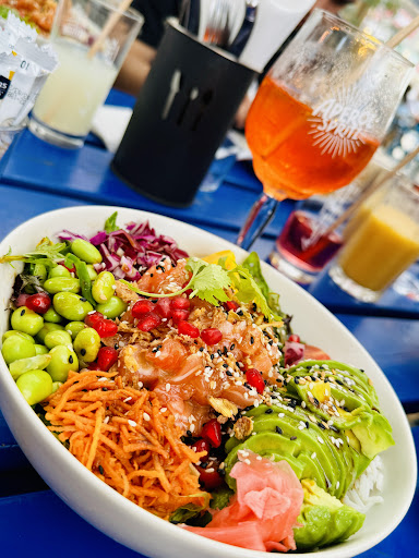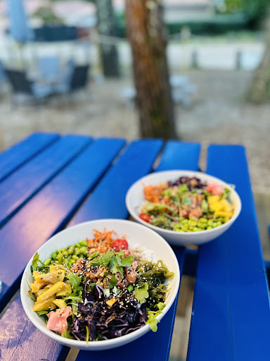 Entre lac et Océan, où l’air marin nous chatouille le nez, nul ne peut rater ce restaurant peu planqué. Une équipe bien soudée et accueillante nous propose avec fierté ce qu’ils font à l’huile de coude. Un cocktail original et frais avec des mélanges impromptues: banane, pêche carotte et coco ? Et bien oui messieurs dames, j’achète ! S’en suit un choix cornélien parmi 2 bangers: le pokebol ou le burger ? J’ai eu l’immense privilège de tester les deux. Le pokebol aux poulets est rehaussé par le crunchy du poulet au goût de reviens-y. Le pokebol est ma foi bien garni et diversifié: attention à ne pas mélanger ! J’en viens ensuite au burger, merci. On ressent la quête du goût pour trouver le bon pain qui câline un steak généreux aux épices tandoori. On finira sur une note sucrée avec des glaces artisanales du coin ou une petite crêpe. Une crêpe pleine d’humilité, simple mais efficace. Pas de superflu, pas d’arnaque sur le prix. Je recommande sans réserve. PS: j’ai perdu mes lunettes de soleil dans l’océan. À l’océan qui me les a volées, elles sont à ma vue. Elles te...
