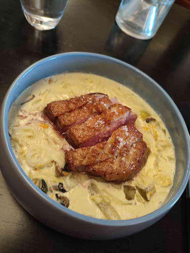 Read moreEtant sur Dax pour un petit séjour avec ma maman, nous avons eu la chance de découvrir ce restaurant. A peine sur les lieux, on remarque la décoration intérieure faite avec beaucoup de goût. Il y a un coté rustique/bistrot du mobilier et très artistique moderne/jazz avec de beaux tableaux et peintures murales. On se sent très vite à l'aise et on est bien accueilli par le serveur qui nous laisse choisir notre table à l'étage. En regardant la carte, il est difficile pour moi de faire un choix, car tous les plats ont l'air incroyables. Nous y sommes allées deux fois, car nous avions adoré l'endroit et les plats, et mon côté gourmande souhaitait pouvoir goûter aux 3 desserts figurants sur leur carte. Et je confirme, chaque plat a une identité à lui. On sent qu'il y a une vraie maitrise culinaire (assaisonnement, sauce, cuisson) et les plats sont riches en saveurs. La qualité des ingrédients est là, et chaque bouchée est un pur régal. Un coup de cœur pour le dessert entremet framboise/citron qui est très bien équilibré. Le service est impeccable, professionnel et accueillant. Un endroit où l'on prend le temps de se régaler, je le conseille pour ceux qui aiment apprécier les...