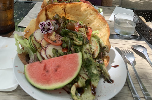Perfect place and great atmosphere! We arrived late on a summer Saturday night and despite the kitchen was closed, we were kindly offered a platter of cold cuts so we could have something to eat (must say it was after 10pm), which we really appreciated. Next morning we went back to grab a coffee and they were just opening, but had no problems to serve us our coffee while they were setting the tables, etc. Furthermore, we appreciated that Spanish and English was spoken by the staff, which is a ++ Pets welcome too, see how happy our doggy...