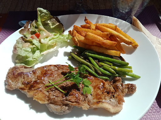 Read moreHet eten is helemaal niet slecht. Ik had de kikkerbillen vooraf en daarna entrecote. Blonde Oldarki (Baskisch bier, zalig) en een karaf rode wijn. Als toetje een copieuze kaasplank. De inrichting is netjes verzorgd, misschien een beetje oubollig. Waarom dan toch maar 2 sterren in totaal? Daar is maar 1 reden voor: DE OBER MET NEUSPIERCING. Let op: die piercing zit tussen zijn ogen. Ondanks mijn bijna overdreven beleefdheid tegenover dit sujet, heeft hij het gepresteerd om tijdens de gehele maaltijd geen woord tegen mij te zeggen en alleen maar op mij neer te kijken, op een manier waar een dictator trots op zou zijn. Het goede nieuws is dat dit soort obers in Frankrijk tegenwoordig de uitzondering is. Een dinosaurus dus, binnenkort...