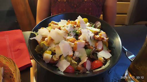 Les serveuses sont trĂšs agrĂ©ables et le repas fĂ»t vraiment exquis. Tous les produits sont maisons et on le ressent dans lâassiette et en bouche. J ai choisi une salade au chĂšvre que je vous recommande c est une des meilleures que j ai mangĂ© ! Mon fils nâavait pas terminĂ© sa pizza, j en ai goĂ»tĂ© une part. Un dĂ©lice !!! Du coup on s est laissĂ© sĂ©duire par les coupes de glaces artisanales qui dĂ©filaient devant nous ⊠de vraies coupes de glaces, jâai eu du mal Ă terminer !!