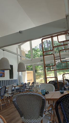 Après un parcours ou en étant un accompagnant patient ou après une balade dans les alentours, toujours un plaisir d'aller consommer au bar pour le goûter, sur la terrasse où en intérieur, bien installé dans un des canapés ou perché sur des chaises de bar face à la baie vitrée, en admirant les premiers trous du parcours de golf ou au loin à l'horizon, scruter l'océan où encore un superbe crépuscule, bref vous devriez être reçu par un beau serveur (du moins les fins d'après-midi) aux grands yeux bleu, gracieux, aimable et serviable - ce qui hélas n'est pas le cas dans la majorité des bars de la région et ceux qui restent après la saison estivale sont souvent fatigués et mal aimables -, qui s'occupe de vous avec attention et discrétion. J'en ai vu d'autres (serveur et serveuse) mais c'est vraiment lui que je préfère, il ne dérange pas les clients avec des bavardages, discret tout en étant attentif et de bon conseil. Un endroit vraiment agréable car très calme et relaxant (sauf lorsqu'il y a des compétitions) que vous pouvez découvrir sans pour autant pratiquer le loisir du golf... ou en profiter pour vous initier. Il y a un restaurant mais n'y ai pas...