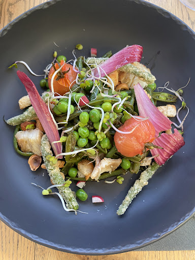 Read moreUn cadre chaleureux malgré la petitesse de l'espace, cozy,joliment décoré...expérience totalement inattendue en se promenant sur le port de Capbreton, à la recherche d'un bon repas ,un mercredi, avec ma fille et ma mère... la délicatesse et l'esthétique soignée des plats sont à souligner. Les mélanges des textures et saveurs...la cuisson du poisson... BRAVO au chef ET au cuisinier, ainsi qu'au serveur très acceuillant. ...chapeau bas. C'était....exquis. Sublime. DIVIN. VRAIMENT. Un DÉLICE.Nous nous sommes régalées.IL FAUT LE DIRE. Hâte d'y retourner. Merci pour ce moment dans une bulle qui frôle la perfection. (Car la perfection n'est pas de ce monde ;)) belle surprise du jour. MERCI la VIE.L'ambiance, personnel sympa mais clientèle un...