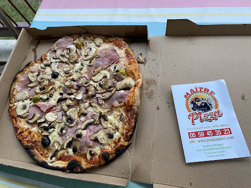 Ayant un appartement (qui est notre rĂ©sidence secondaire hors saisons) Ă Ondres plage que nous louons qu'en locations saisonniĂšres de mi-juin Ă mi-septembre Ă des locataires en recherche de confort et de qualitĂ©, Ă chaque location, nous n'hĂ©sitons pas Ă recommander Ă nos locataires MaĂźtre pizza, suffit de commander par tĂ©lĂ©phone avant (documentation et tarif Ă disposition dans notre appart pour nos locataires) et Ă lâheure indiquĂ©e, câest prĂȘt et nickel de plus câest bon et Ă prix corrects. (rien nâavoir avec les trucs infectes fait dans une camionnette douteuse prĂšs de la nouvelle aire de jeux communale de...
