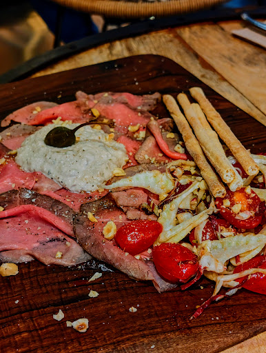 Le patron vous accueille d’un chaleureux accent italien et de bacantes cirées. Les trois serveuses sont italiennes et madame est en cuisine. La direction est originaire du nord ouest de l’Italie et s’approvisionne pour le fromage et pour la viande/charcuterie là-bas. Ambiance surf/cool: on fait comme chez soi, assis sur des manges-debout des tables ou sur un sofa. Deux services: 19:00 ou 21:30. N’espérez pas avoir une table sans réserver 48:00 à l’avance ! Re-ser-vez!!!!!!!!!!!!! Premier bon point: les enfants ont la même qualité de nourriture dans l’assiette que les parents et à 10€ le menu enfant, respect ! Le patron explique volontiers qu’il a des enfants et qu’il ne conçoit pas les traiter différemment : je partage cette vision et je l’apprécie. Le patron va même jusqu’à s’excuser car le sofa est « trop petit » pour mes deux filles et mon épouse : nous n’avons jamais été si bien reçus. Oubliez ce que vous croyez savoir de la cuisine italienne et prenez ce que vous ne connaissez pas: un ritroversi plutôt qu’un spritz vu et revu, la carte des spécialités plutôt qu’un câprese pizza. Non pas que ce soit mauvais mais il y a tellemement mieux sur la carte!!!! Seule entorse à cette règle, la carte des desserts. Ah ! Un conseil pour les vrais amateurs : finissez le repas sur un correto comme un vrai ancien en Italie !!! Mon grand père adorait. Moi itou ! Commencez par un tagliere (Plateau de fromages et/ou de charcuterie), poursuivez par un plat de pâtes sauce maison (classique agnoloti, pli, gnocchi gorgonzola il y en a pour tous)