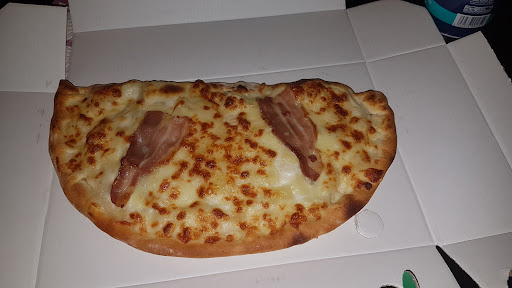 Note basse car : 60 pizzas proposĂ©es ???? C'est beaucoup trop, on s'y perd, c'est Ă rien y comprendre, la derniĂšre fois que j'ai vu autant de pizzas proposĂ©es c'Ă©tait au rayon surgelĂ© d'une grande surface... 3 tailles diffĂ©rentes de pizzas avec 3 prix diffĂ©rents : nous sommes submergĂ©s d'informations, sans pour autant connaitre les tailles des pizzas "petite", "moyenne", et "grande"... La carte est surchargĂ©e avec ses 60 pizzas (dont 13 pizzas discount ?), ses salades, ses pĂątes, ses sandwichs et Tex Mex, ses desserts, son menu bambino : lĂ aussi, le choix parait difficile et les prix mĂ©langĂ©s nous font tourner la tĂȘte... Le surplus de fromage sur la Calzone masque les autres garnitures, ce qui est dommage. De plus, une cuisson lĂ©gĂšrement augmentĂ©e pourrait rendre la pĂąte plus croustillante (et les lardons beaucoup plus cuits)... Nous nous attendions Ă autre chose, au vu des prĂ©cĂ©dents commentaires postĂ©s ici. L'identitĂ© de la pizzeria nous Ă©chappe : Italie ? New-York ? Dax ? Nous n'en saurons pas plus pour ce soir...