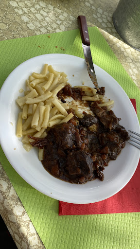 This is a truck stop with good hearty food, in a nice environment, but the prices are higher than they should be for what it is, we felt. We received a lovely warm welcome, and the service was exemplary throughout our meal. My rare steak and salad were plentiful and cooked well, my partnerâs saussicon were tasty. However his accompanying coleslaw was obviously store-bought and desert was an ice-cream in a plastic tub. Our carafe of rough and ready wine was just 4⏠but the meal came to 39⏠.... not really reflective of what we had. To end on a positive note, though, the couple running the place are absolutely lovely, and clearly take pleasure in what they do, which was...