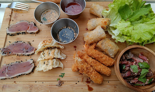 Read moreDéco et ambiance du site agréable, cependant, l’accueil et le service ne sont pas à la hauteur de l’attente des clients. Le jugement sur l’apparence est de mise, étant touristes et décontractés, nous étions parfaitement présentables (polo- bermudas shino pour mon mari, chemise-bermuda shino pour notre fils et petit haut-short pour ma part), nous avons été extrêmement déçu. Le cendrier céramique nous a été enlevé pour la table d’à côté et nous nous sommes retrouvé avec un cendrier en métal ce qui ne nous pose pas de soucis mais sans nous parler…ensuite à savoir que si vous n’embrassez pas la patronne en arrivant vous ne serrez placé qu’en dernier même si vous avez réservé! La responsable ne pouvait nous accueillir que jusqu’à 19h30 et pas possible pour 20h: ok nous étions à l’heure et installé à 19h55!!! En ce qui concerne le repas, cela n’a rien d’extraordinaire, c’est bon mais pas non plus explosif au niveau gustatif! Relativement cher d’ailleurs pour une soupe 🧐 de pâtes chinoise! Au départ du service, ils ont voulu nous enlever nos apéros alors qu’on n’avait pas terminé, pour notre fils qui est habitué à aller au restaurant, la serveuse lui a limite « balance » le bâtonnet de glace sans lui demander le choix du parfum sur la table, toujours sans nous parler. On s est vraiment senti comme une gêne dans ce restaurant, par contre lorsque mon mari a sorti sa carte « gold » étrangement, la responsable a changé de tête et ne lui a pas posé de question savoir comment cela c’était passé!!!!!! Même être poli, ils ne savent pas, à moins qu’elle eut craint la réponse! Surtout, même si vous trouvez la cadre superbe, ne vous laissez pas surprendre par la médiocrité des prestations. Moralité: ne jamais juger les apparences!!!! A 21h nous étions en voiture avec une amertume de notre soirée et une certaine indignation qui nous donne envie de remonter cette expérience dans les guides culinaires et touristiques. Bien dommage pour des touristes qui souhaitaient juste se détendre dans un cadre bucolique et...