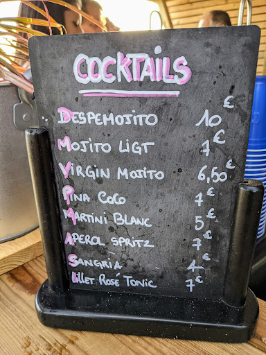 Estuvimos un par de dias en Capbreton y tras pasar una tarde de playa nos acercamos al local. El sitio es precioso, muy chulo decorado y con el suelo de arena, un gran ambiente para rematar un día de playa. Nos sentamos en una mesa y nos pedimos unas cervezas, Estabamos tan a gusto que repetimos ronda y en ese rato decidimos quedarnos a cenar algo al ver que la carta era variada. Tras mirar lo que íbamos a pedir uno de nosotros en un intento de hablar francés (NINGUNO LO HABLAMOS) avisamos a la camarera y chapurreando pedimos lo que queríamos. Cual fue nuestra sorpresa cuando al terminar de decir los platos se nos queda mirando y en alto empieza a decir: hola! Hola!!Hola! gracias” por favor! Gracias, españoles, hola!! Españoles!!
