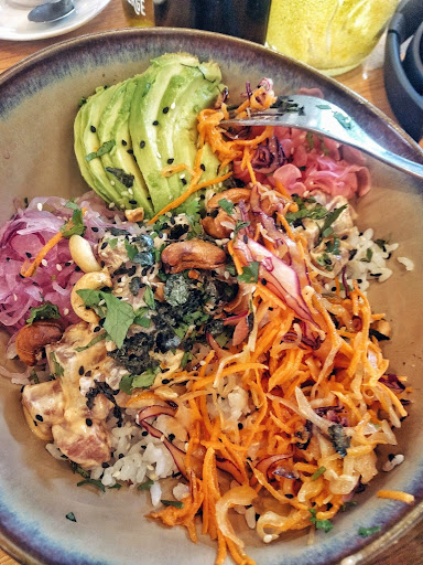 Occasionally a restaurant's food is so good that I'll forego acceptable manners and pick the bowl up to scrape it clean, once in a while, I'll place it close to my mouth so as to make the maneuver more efficient. Tante Jeanne's bowls were so good that I not only did this for my dish (Thais Bowl), but my wife's (Lisa Bowl) as well.