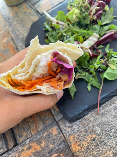 Lovliest place to be for any time of the day. (Tasty) morning coffee with a view, lunch break with hot snacks or a cool drink, sundown apéro or dinner with friends. The team always makes you feel welcome while navigating around the cosy seats and tables in the sand or on the terrace. They litteraly go the extra mile every day! Depending on the time you arrive, you can order/pay via qr code which is such a nice thing to have when you don't feel like talking too much 😀 Book a table in busy times! But you can also take your order to the nearby stones and sit there when no table available....