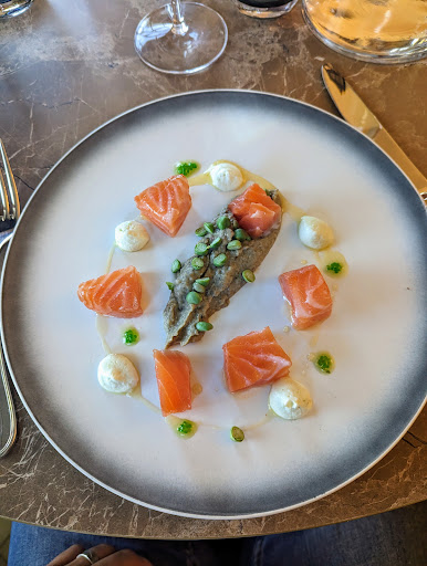 Read moreKönnte Potential haben, wenn die Banlieue Musik nicht wäre. Kleine Weinflaschen (37,5 cl) gibt es nicht und für Mittag als Autofahrer eine Flasche (75 cl) ist nicht ideal ( Preis ist Nebensache). Mittagessen mit Partnerin, die so gut wie nichts trinkt, ist man verlassen. Lokaler Wein offen war ok, aber wenn man für 125 Euro Mittags a la carte isst will man etwas Luxus. Das war das erste Testessen ( etwas geschmacksneutral) aber nachvollziehbar. Als Ex- Exportmanager, der die Welt bereist hat und gerne Restaurants besucht hat und nun seit über 8 Jahren in Frankreich lebt, muss sagen, dass die hochochgelobte französische Küche langsam die vorderen Plätze verliert. Werde in 6-9 Monaten einen Zweitversuch am Abend versuchen. Service ist freundlich und aufmerksam. Lokalität ist was feines, nur irgendwas fehlt. Wir...