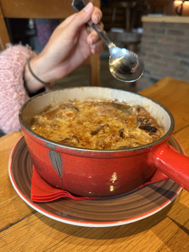 Read moreWe came here in hopes of some nice onion soup and boy we were not disappointed. The soup is huge, I read a review that itâs enough for two people and this is accurate, but itâs delicious. My partner and I both got the lâarbois Express menu and it was great! Wonderful and well priced. We both had the Coti du Haut-Doubs and the pork was tender and cooked perfectly with delicious potatoes and homemade mustard on the side. Atmosphere is cozy and gives the vibe of a tavern, itâs loud with the occasional drunk singing, but you can still hold a conversation with someone. Our server was friendly and diligent, service could have been quicker in general but the food was definitely worth the wait. Will definitely come back again when weâre...