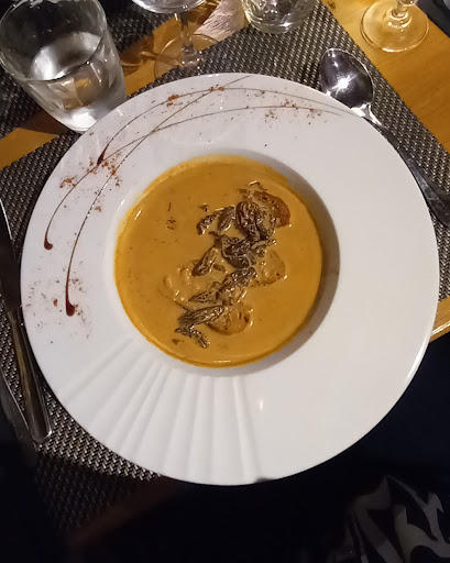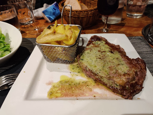 Read moreMon avis pas rapport à l'extérieur : Petite entrée mais bien voyante avec toute cette lumière bleu ! Attirant 😁 Mon avis pas rapport à l'intérieur : Joli, voûté comme une vraie cave, parfait. De très beaux cadres sont exposés dans la salle où nous avons dîner 😍 Mon avis sur l'équipe : Nous avons eu une jeune demoiselle à l'entrée, très gentille, un peu réservé, poli, agréable. Une demoiselle qui faut garder 😋 Par la suite nous avons eu un jeune homme qui lui aussi était très gentil, très poli, très agréable, très professionnel ! Il faut le garder également 😋 Mon avis au niveau du repas : J'ai commencé par un kir à la framboise ... Mais ... J'ai été déçu ... Je ne sentais pas le goût de la framboise ... Et le vin était très sec, très fort. Je n'ai pas apprécié. Ensuite, j'ai pris une entrecôte sauce morilles / vin jaune. L'entrecôte était très grasse ... Viande premier prix! J'en ai fais la remarque au serveur, il n'était pas étonné, comme ci je n'étais pas là seule à lui avoir fait la remarque. Ceci dit, je comprends pourquoi ma viande était noyée sous la sauce ... En parlant de sauce, elle était excellente! J'ai même eu un instant où j'ai cru qu'elle était faite maison !! La question reste entière 😉 Je n'ai pas demandé car je pense que ceci aurai été signalé 😉 Je n'ai pas saucé puisque ça devenait écœurant à force et je ne pouvais plus rien avaler car c'est copieux !! 😁 Un restaurant qui...