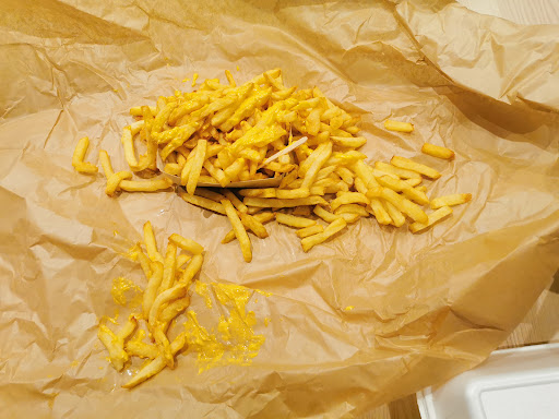 Read moreBonjour! Je mets une étoile car j'y suis obligée pour pouvoir poster cet avis très négatif! Nous sommes venus à 4, il était aux alentours de 21h40 soit 20 min avant la fermeture, il y avait trois groupe de personnes qui faisait la queue en tout (avec nous compris). Le patron ferme les stores et nous dit tel quel "vous allez commander quoi ? des frites parce qu'on va fermer donc faut emporter!" Donc pas le choix... on prend la commande, et d'office il met les deux barquettes dans le même emballage (pourtant on paye le même prix..), et il s'est trompé dans les sauces! Conclusion, pas possibilité de manger sur place, bon à la limite au vu de l'heure... mais pas les bonnes sauces donc nous n'avons pas pu les manger (allergie)! et on a du aller dans le parc à coté sur un banc pour manger à 4 difficilement dans le même paquet ! Et le pompom, frite vraiment très grasse, aucune saveur et super dure... Il n'y a plus de bonne...