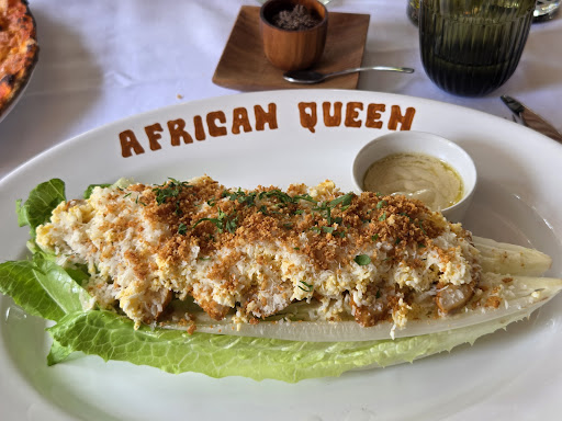 Этот ресторан открылся недавно, но мы были в нем уже дважды, и впечатления остались диаметрально противоположные. Оценка моя будет на основе второго посещения, неделю назад. С African Queen мы знакомы давно, теперь это уже сеть, и хотелось посмотреть, что же такое открылось в Сен-Тропе. В Болье после реновации мы еще не были, а в Дубайском ресторане были в январе. Поэтому позволю себе некоторые сравнения в своем отзыве. Первый наше посещение было прекрасным. Попросили уютный столик на диване - пожелание учли, сидели с видом на площадь, в небольшом отдалении от других столов (что удобно, т к мы с собакой). Официант - очень приветливый, профессиональный, быстрый. Обслуживание - внимательное. На столе всегда чисто и красиво. Просьбы выполняются. Ничего не забывается (кроме столовых приборов при перемене блюд, но менеджер переводит это в шутку про "сначала насладитесь блюдом глазами", и мигом все решается). Еда - все вкусно и красиво. Приходим на закате, потом вечер, мягкий свет, приятная атмосфера. Решено - скоро вернемся. Второй раз. Приходим так же рано (20ч), занято всего несколько столиков (обычно все здесь приходят позже, но нам нужно успеть на кораблик), неулыбчивая хостесс ведет нас к худшему в зале столу - в левом углу, в глубине, без какого-либо вида, в центре пыльной парковки мотоциклов. Я объясняю - не хотим, были пожелания, стол не нравится. Она - могу предложить только это и еще вон то (указывает на стол у наружной стены, затянутой пластиком, через который светит солнце, это при температуре 30 градусов! нет, спасибо, в парнике за пленкой сидеть не будем). Решаем уйти. Тогда она предлагает еще стол - нормальный, рядом с тем, где мы сидели в прошлый раз (и который освободился через 3 минуты, люди уже расплачивались, и он потом стоял долго пустой). Остаемся. И напрасно! Официант у нас странный, забывчивый, непрофессиональный. На просьбу говорить по-французски, целый вечер говорит по-английски, и смеется, что "он забыл". Долго не приходит принять заказ, зато потом его принимает, и убирает всю сервировку со стола - мы 15 минут сидим за пустым столом с водой. Забывает, какое вино мы заказали, приходит спросить повторно, вино приносят только уже с едой. Не уносит грязные тарелки (тут его выручают коллеги), не приносит воду собаке (аналогично), не убирает стол, вообще никак с нами не взаимодействует. Шок: когда закончилась вода (8 евро?бутылка), он, проходя мимо, молча забрал бутылку и отнес ее на полку, не спросив, не нужно ли еще! Потом мы ждали, у кого заказать, минут 10. Официанты в тот день были какие-то сникшие - возможно, потому что в этот день был другой босс, взрослый, а в 1й раз молодой. Я оба раза заказывала артишок. В первый раз он был плотным, с многочисленными лепестками, внутри — сбалансированная начинка и умеренно острый соус. Во 2й раз это было что-то разваренное, высотой в два лепестка, внутри на вкус и вид только пармезан. Соус был очень едкий, я это почувствовала сразу по покалыванию губ. В интернете советовали тут же смыть уксус мылом — я так и сделала, но ожог всё равно случился, врач прогнозирует заживление около 1,5 месяцев. Заказали кофе, и вместе с ним официант нам принес счет, который не просили. На наш молчаливый вопрос сказал - ну, вы можете сидеть, если хотите. И пропал. Мы ходили с этим чеком по залу в попытках оплатить, нас куда-то отсылали, пересылали, стояли-жд