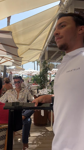 Read moreAll in all a disappointing experience! No one likes to be ripped off, no matter how much money you might have. Having a photographer going through, disturbing us during lunch to take a photo, might be a cute idea if they do it for their social media or hand out the photos as a nice memory to the guests. But later on trying to sell a digital copy of said photo for 50€ to us is beyond ridiculous. Same applies to their valet parking trick for which they charge 20€. First you pay 15€ to get into the parking lot anyway. It is a big self parking lot. Following the signs to get to Bagatelle, there was a guy waving at us, making it seem like we have to give him the car. That was the valet of Bagatelle who then parked the car a meter further. It wasn’t a busy day so the whole lot was empty anyway - also straight at the entrance. We could have done the parking ourselves. Picking up the car he just gave us the key, didn’t drive it to the entrance - which also wasn’t really necessary as it was parked close by. But charging 20€ for that is ridiculous. There was no vibe when we were there on a Monday for the 12.30pm seating. If you want music and a vibe make sure to go for the second seating and go on a Friday, Saturday, or Sunday. It was a bit disappointing. There is no proper temperature control. It was very difficult to enjoy the lunch because of the heat. Bagatelle is shielded off by some sand dune. Because of that you don’t have any sea view. You might as well be sitting in a courtyard in St Tropez town. Because of the dune and building surrounding the restaurant space there is no air flow. It was extremely stuffy. There are no ceiling fans. There is no water mist system - like they have at the Dior Cafe for instance. Of course no outdoor AC either. Why they don’t even provide cheap paper fans remains another question. That said, the food was great- of course expensive, but great. And the staff was friendly and forthcoming. That’s why they get the two remaining stars...