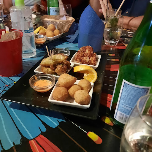 Read moreAvis vérifiable et pas d'un fidèle habitué... Restaurant à FUIR. Résa proposée par le restaurant à 21h30 pour 2e service (un peu tôt pour un 2e service vu la météo et le nombre touristes mais pourquoi pas); arrivée pile 21h30 attente plus de 15 min dehors bord de plage malgré la résa..., serveur hyper stressé; table libérée attente 10 min pour prise commande boissons, hauts parleurs à fond dans les oreilles : retransmission concert "rock" brésilien imposé à tous (plafond décibels légal dépassé je pense surtout pour diner avec enfants), demande de baisser le son car la serveuse elle-même n'entendait pas ce que je souhaitais.... ok, mais juste 2 décibels baissés et le bruit des 4 énormes ventilo vieillissants dont 1 juste au-dessus des têtes a quasiment pris le dessus... 10 min après (il est donc 22h passé) les boissons arrivent : grands verres les glaçons c'est bien mais point trop n'en faut donc alcool totalement noyé inspide, sauf la bière... Pompon : la carafe d'eau quasi tiède direct sans doute du robinet de St Aygulf sans être rafraichie (on connaît bien l'eau de St Aygulf que l'on filtre) et 5 olives (si si) plus pop korn bof.. On décide à quatre après concertation avec les enfants de ne pas rester diner là, on demande l'addition, serveur étonné très trop (!) insistant pour savoir pourquoi on ne souhaite pas rester à plusieurs reprises, ok il part faire l'addition, 10 min plus tard serveuse (qui avait baissé les 2 décibels) demande aussi avec insistance (bienveillance?) en revenant avec l'addition, trop aimable : elle demande avec un air attristé où on va manger si on reste pas?? mon mari a répondu : à la maison, fin de conversation inutile et temps bien précieux perdu par 2 serveurs pour les autres clients! Notre salade et poulet maison + rosé étaient excellents, sans regrets parce que les tarifs menu ne sont pas donnés vu le début de "prestation". Faut dire que 3 serveurs stressés pour tant de tables c'est limite!! Mais l'eau de la carafe on ne me l'avait jamais faite! scandaleux vu la saison. Avisés : ne pas y aller pour diner en famille, ça doit rester un débit de boisson pour fêteux tardifs de bord de plage mais pas "un restaurant" où on prend le client d'emblée pour le touriste de passage et pour une bille qui connait pas le mojito ni les fiesta brésiliennes au Brésil ou ailleurs.... Donc une étoile à retirer. Nourriture sans avis juste jeté un coup d'oeil sur les assiettes environnantes pas de quoi tomber à la...