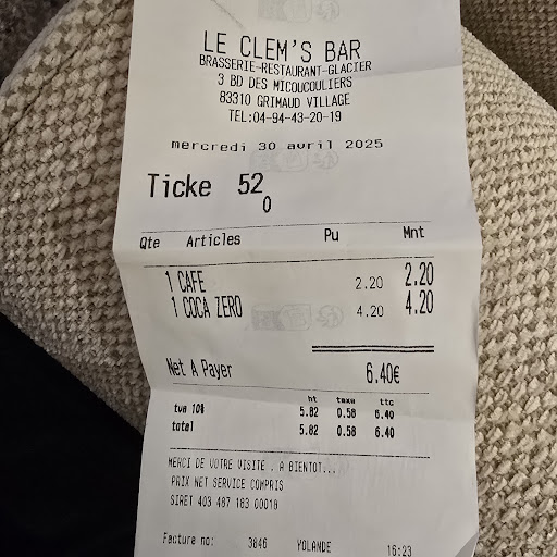 We are locals and have been dining at Clems for well over 20 years. The meal we just had here was so bad it’s really very sad. The veal was tough and inedible, the entrecôte steak that was ordered arrived as a raw steak hache and my chicken and mushroom sauce was tiny and the sauce tasteless. The portions have shrunk to less than half the size of the past as they have new black plates which are much smaller and the prices have sky rocketed. A plat du jour for €22 is just ridiculous! It’s a PMU bar, a village cafe nothing more. It used to be cheap, cheerful and fantastic fun now they think they are a fancy up market restaurant however their food just isn’t good enough to fit that description sadly. Plus John the owner is rude and unfriendly to put it mildly. The rest of the staff and his brother are all very nice. Luckily there are lots of other restaurants in the village to chose from now that have a much better standard of food and are correctly priced. I came back for dinner another couple of tones during the summer as l was invited. The first time we were followed home by John who accused us of leaving without paying the bill. My friends daughters were still in the restaurant eating their dinner. My friend was just being a gentleman and offered to walk me home so was absent for 5 minutes from the table. The next dinner the hamburger was over cooked the lettuce and salad also cooked and the hamburger bun wet and soggy. The next a brochette of veal was raw and l mean raw as in Bleu so l had to send it back. We tried to have lunch there today and were ignored by all 3 waiting staff so we left after 15 minutes...