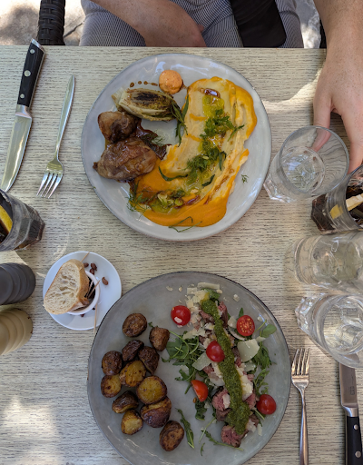 Visited this beautiful restaurant on our last day and immediately regretted not coming sooner. We came for lunch on the hottest day of the week and were sat under the trees by a cooling fountain. Service was prompt and extremely friendly/polite, our dishes were absolutely delicious. We ordered the Vitello tonnato and fried calamari for starters and nearly cried: they were by far the best seafood starters we’d had all week long (I’m looking at you, port Grimaud restaurants). For mains, we had the grilled octopus and a grilled Mediterranean fish (can’t remember the name), both impeccably grilled while retaining their original flavour. When I say we’re coming back next year, I mean it....
