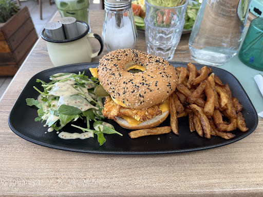 Read moreFood is great, the chicken bagel is very nice. It’s basically a large chicken burger menu with fries and salad on side with a hole in the bread :) The fries could be improved but I can’t complain, it’s not a fast food place. The portions are really filling and next time I’ll definitely try the Cheesecake Basque.
