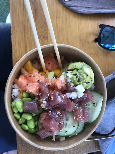 Read moreI am 1,88cm, 105kg and I was enjoying the beach right in front and I was starving. I got the Big Poke Creamy Salmon, for 16€, and I was a bit afraid I would be hungry but the portion was perfect. It was very tasty and filling. Perfect for a healthy day...