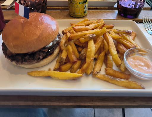 Read moreBurger et frites plutÎt bon. Rien d'incroyable mais on a aimé bien supérieur a un McDo. J'ai trouvé les portions un peu petites c'est dommage du coup on a trouvé ça un peu cher, mais tout le coin est trÚs cher donc on peut pas lui reprocher de suivre le mouvement. Il a raison. Le patron vraiment super sympa avec un super accueil. TrÚs bon point il y a des toilettes, mauvais point les tables avec des trous ne sont pas pratiques. Je pense...
