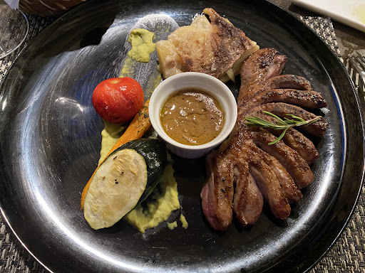 Read moreCould not agree more with an earlier comment: nice place, beautifully situated (depending on the location of your table and orientation of your chairs). We were a party of four. Three time the meat was cooked to perfection. Sides were really good, for my lamb even superb. Friendly staff. Although prices for drinks are very steep (6 euros for a beer, 10 for an apero) this is compensated to an extent through reasonably priced dishes. We will be back, but will...