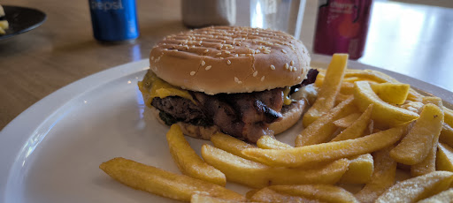 Lovely looking restaurant and even though you’re essentially sitting in a car park it doesn’t feel like that at all. Very friendly and nice service. The burgers are ok but not amazing. The fries are quite good. We are very spoilt in the UK with really excellent burger chains (GBK, Honest Burgers) so this wasn’t anywhere near as good. The kids menu is really good value at €6 for burger, fries, drink and ice lolly, and was probably too much food (the burger was nearly the same size as ours). Was a little disappointed that the waffle although crispy felt like it had been reheated from frozen and was stone cold. A nice place but...