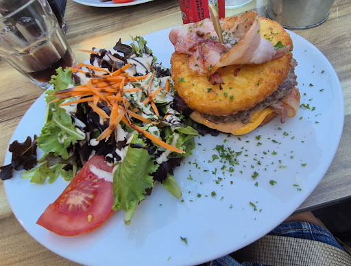Read moreNous sommes venus le 28Aout déjeuner dans ce restaurant. Accueil inexistant, nous devons intercepter le serveur car nous attendions et passait devant nous sans rien nous demander. Il nous installe, apporte les cartes, passons commande et là on demande si un plat (je ne me souviens plus lequel) est accompagné de frites, réponse ah non il y a déjà une galette de pomme de terre dans le montage… du coup la personne change de plat et là, réflexion sous le ton de l’humour « ça valait bien le coup de me faire écrire tout ça ! » Je parle de passer sur le ton de l’humour quand nous avons vu comment il a accueilli deux personnes s’étant assises n’ayant personne pour les accueillir et qu’il leur a jeté un : « bein vous vous asseyez sans demander ! Je ne peux pas savoir ce que vous voulez ? Ah mon humble avis je ne pense pas qu’il venait pour faire un scrabble mais ça n’avait pas l’air aussi limpide pour ce gentil serveur) Deuxième temps les plats arrivent… comment dire… le Burger… pain décongelé ou alors de très mauvaise qualité. Les steaks et bien on repart sur du congelé… 0 saveur insipide. Et le pompon arrive avec les fish and chips… des fish and chips sans sauce tartare ! On appelle ça un poisson pané frite non ? Et encore le poisson avait il vu l eau ? Aucun goût ! De l’eau panée (il a du au moins voir l’eau de sa congélation) Les frites bien évidemment surgelées nous ne sommes effectivement pas sur un restaurant type gastro mais là c’est pire qu’un routier ! Quand je vois les 5/5 ça ne peut être que des amis ou alors des personnes n’ayant toujours pas retrouvé le goût après un COVID. Nous avons eu du mal à digérer cette cuisine fine et la facture de 87€ pour ce genre de plat n’est...