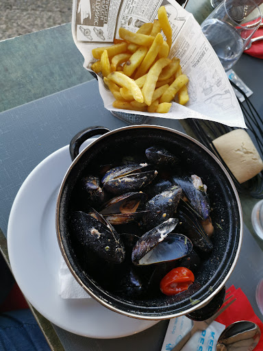Je m'en veux de ne pas avoir pris plus de temps pour regarder le menu avant d'avoir réservé ici. Je me suis dit naïvement que, comme pour une crêperie, un restaurant de moules serait meilleur marché que les autres. Mais non, j'ai encore plus le sentiment de m'être fait volé ! Quels pigeons nous avons été. Le soir, un seul menu à 29€. Mais pour quoi? Nous avons pris en entrée les crevettes (6 crevettes et 3 ou 4 feuilles de salade), en plat principal, des moules avec un mini panier de frites (je doute fortement que les frites ne soient pas surgelées). Mes moules étaient celles vendues hors menus à 20€ ('maison') : elles étaient correctes mais simplement avec de la crème et 4 tomates cerises ! Le dessert, nous avons pris celui avec quelques morceaux de meringue sèche, une boule de glace passion et du coulis de fruit rouge industriel ou l'autre avec une (!) profiterole. Hors menu, les moules sont en moyenne dans les 18€ et les desserts 8€, soit 26€ !!! Le verre de vin blanc, 5€, était bon. Bref, pas mauvais, mais, à 4 avec 2 enfants qui ne prennent plus de menus enfants : 126€! Du délire. Je veux bien mettre ce prix là mais pas pour ce repas, même pas au bord de l'eau. Le service était long (même en arrivant à 19h30) mais plutôt sympathique. Dernier point, je ne dis pas que les autres restaurants du port, voir de Cavalaire, ne sont pas dans la même optique et ne prennent pas aussi les touristes pour des vaches à lait. Quelle erreur de nous être décidés si rapidement et sans avoir plus fait le tour des cartes ! Étonné aussi que les gens soient contents du rapport...