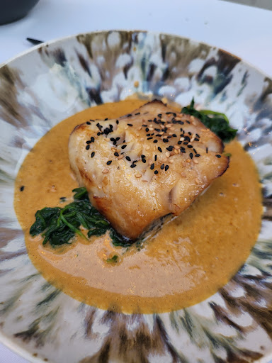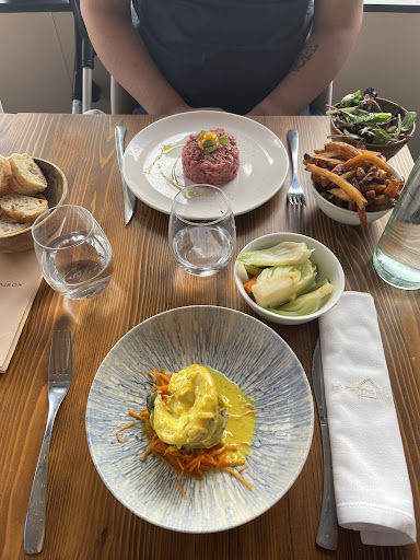 Cela faisait un moment que nous souhaitions essayer ce restaurant de Sainte-Maxime, en raison de ses nombreuses critiques positives, de son ambiance chic et de ses plats raffinés. Étant amateurs de restaurants gastronomiques, nous avons décidé de réserver une table. À notre arrivée, la personne qui nous a accueillis nous a informés que notre table n'était pas encore disponible en raison d'un retard du service précédent. Elle nous a gentiment invités à patienter en prenant un verre de l'autre côté de la ruelle au bar de la petite maison. Nous avons accepté sans problème, mais nous avons remarqué que les tables n'avaient même pas été débarrassées, et personne n'était présent pour prendre notre commande. Finalement, nous avons reçu la carte et commandé deux cocktails, qui ont été préparés rapidement et étaient délicieux, je dois le reconnaître.