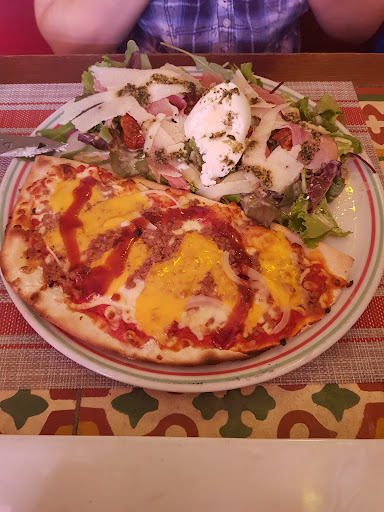 Bonne soirée à ambiance de prévus grâce à l’apéro concert organiser par la ville . Nous commençons par prendre l’apéritif après plusieurs minutes d’attente . Il a fallu ensuite interpeler la serveuse pour qu’elle puisse prendre notre commande au bout d’une heure . Celle-ci à rétorquer « ah j’ai oublié » …. Arriver au plat ( nous n’avions pas pris d’entrée ) , je trouve pas 1 mais 3 cheveux dans mon assiette ! Et encore je n’ai pas continuée à farfouiller ! La sauce au gorgonzola étais très huileuse et liquide pratiquement sans goût ! Il a fallu que nous réclamions nous mémé des couteaux pour la viande , les sauces , le sel et le pain et de même pour une nouvelle carafe d’eau et le remplacement du cendrier enlever . Nos verres d’apéritif était toujours sur la table fini depuis presque 2 heures ! Il a fallu encore attendre une éternité pour être débarrassé, c’est-à-dire arriver au dessert ! Car oui on nous a pris la commande des desserts en ayant débarrassé la moitié de la table , puis la serveuse est parti sur des tables inoccupées pour débarrasser …
