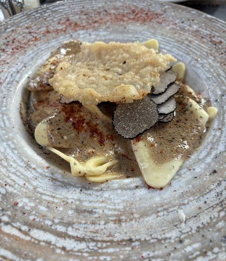 We only made it to the starter before we left. Here are my comments on the food: The mise en bouche was a sad raddish with some tasteless sauce. There was a attempt of a gazpacho that tasted only of garlic. The asparagus was poorly cooked and the Norway lobster was not fresh at all.