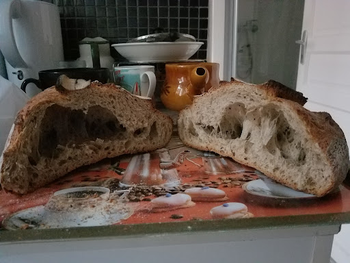 Read morenote attribuée à la pizza chèvre et miel, olives NFG dénoyautées désastreuses. Déssalage nul, limites pas bonnes parceque trop à l'air. Dommage, le calibre est du 19/21, donc théoriquement correct. Support mal équilibré, une farine pour une pizza dite Pizzaillo, c'est une farine avec un P/L très faible (Alvéhogramme), cad un L très long. Par excellence, farine d'un claqueur 1 mélangée avec 3 autres: Convertisseurs 3,4 et 5. donne le goût et le coté bis. Miel surabondant, pizzas trop sucrée. Chèvre trop moelleux et manque de caractère, effacé par le sucre. Par contre cuisson parfaite, dommage car tout le reste ne le sublime pas. Xavier BLANC Références: Pizzas de Manosque, fraîches et sorties des fours à bois, Baptiste Messerlin, Flassans/Issole, une recherche du goût, Moulin Petterschmitt, Niedhergheim, La Table des Gormands, Le Muy Primo S.A., Cuers, AgroAzur, Les Arcs, fermé et...