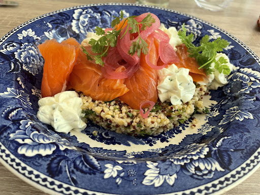 Une catastrophe !!!! Pas de papier mains dans le distributeur des toilettes , un mitigeur fonctionne sur les deux et rien n’est signalé Au moment d’accéder à notre table , nous devons déranger un client pour pouvoir passer . En effet, seul un accès sur deux permettant d’aller à la véranda est ouvert !!! La climatisation y fonctionnera de façon aléatoire Pas de carte des boissons !!!! Alors qu’il fait une chaleur caniculaire, pas de salade à part un gravlax de saumon qui s’apparentera plutôt à un saumon fumé… Et au moment du dessert , le serveur nous propose 2 gâteaux exposés en vitrine dont une mangue qui se révèlera sans intérêt. Et lorsque nous demandons une glace : elles ne sont pas arrivées !!!! Vivement décembre qu’on puisse y goûter Les serviettes en papier étaient dépareillées et lorsque on a besoin du serveur, il faut s’époumoner pour attirer son attention La personne qui a réglé l’addition n’a pas eu la note !!!! Bref...