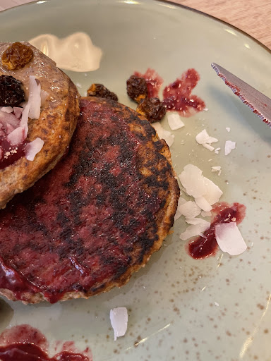 Je me suis retrouvé avec un pudding aux graines de chia (génial de pas prévenir si on aime pas ou si on est allergique !), un avocado toast qui laisse à désirer, un œuf à la coque et des pancakes. À la fin des pancakes personne ne vient me débarrasser sachant que j’attend mon dernier plat.