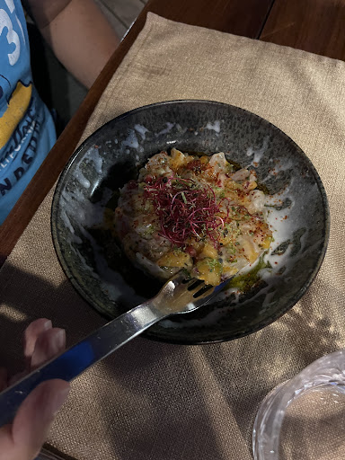 BEST TIME EVER ! I should start by saying that in many ways, I'm an extremely demanding customer. First, a place that blends right into nature. A beautiful mix of woodwork and greenery, like Bali or the Caribbean. A rooftop with a stunning view of the Bay of Cavalaire. Laurent, the boss, greets you warmly. He's classy, all dressed in white linen, friendly and welcoming, just like his place. The staff is great, with bright smiles from one and a little Italian accent from the other. Professional without being over the top. A well-crafted, refined menu, just the way I like it. We ordered two set menus with starters, main courses, and desserts for €35 each. They even made a special vegetarian dish for one of us. I had the grilled sea bass, which was excellent. The fish was perfectly cooked, tender, and flavorful, and it came with the best sweet potato puree ever—smooth, creamy, and just the right amount of sweetness. We were with family and had an awesome time. The highlights: Delicious starters and main courses The rooftop view Convenient parking All credit cards accepted A TV screen for July 14th to watch the Euro final and fireworks Go for the crème brûlée instead of the Tatin, which would be my only minor complaint (but I’m picky). In summary: whether you’re with family, friends, or a partner, this...