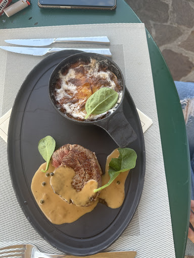 Read moreCadre très agréable, moi qui aime la nature et la végétation, ce restaurant se situe aux abords du parcours de golf avec nos beaux reliefs en fonds, petit bémol, lors de votre repas, vous entendez souvent le bip des voiturettes. Même lorsqu'il fait chaux, la terrasse est en hauteur, bénéficie d'un air frais, et c'est agréable. Cette fois-ci, plus de cocktail car le bar était débordé...pas top, il faudra revoir la copie. Le repas est de qualité et pas excessif, en revanche lorsque vous n'avez plus assez, surtout l'ingrédient principal pour faire une assiette...il faut simplement le dire et ne pas en amener une...au rabais, même si c'est dans un menu, et que l'on s'attend à une quantité moindre. Merci...