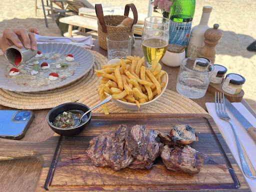 On the other hand, the beach experience was a complete letdown. During the entire day, we rented sunbeds, but the service was poor and it felt like you only got attention if you were a big spender. What really left a sour taste was the way we were told to leave the beach at 5:30 PM. The staff was quite unfriendly about it, and when we asked if we could have a drink at the bar or a table instead, the only option offered was a dark, tucked-away spot right next to the toilets, as if they wanted to hide us away. For the price you pay, you expect much better service and hospitality.