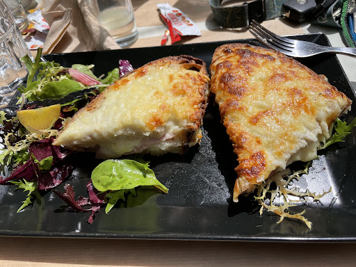 Read moreNous y avons mangé à 4 ce midi. 10,80€ le croque monsieur sur du bon pain et très bon. 3,80€ la barquette de frites maison assez bonnes. On y mange bien, rapide et pas très cher. La terrasse ensoleillée est fort agréable et il y a davantage de places assises qu’on le croirait en façade.