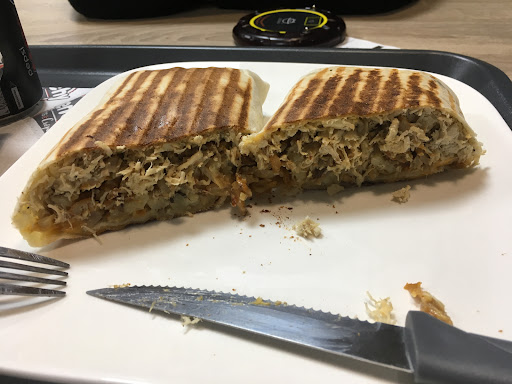 Lieu très bien rénové avec un effet moderne . J ai pris un tacos 2 viandes supplément champignons et cheddar . La sauce fromagère n est pas très présente et du coup le poulet très sec( et trop poivré à mon goût). Donc mitigée pour ce tacos qui avec un Pepsi m est revenu à 9€10. J ai testé le cappuccino , très bon mais 3€60 c est un peu cher. Enfin j ai voulu tester les crêpes et demandé une crêpe nuttela. La crêpe en elle même était bonne mais quand on demande une crêpe Nutella ( et que le logo du pot de nuttela est sur la carte) on veut pas du chocolat fondu. Donc avis mitigé j y retournerai peut être tester la crêpe salée . Le personnel était souriant et sympathique malgré ma demande relou de couverts . D’ailleurs comme vous pouvez le voir sur la photo on a la chance d avoir une assiette ce qui...