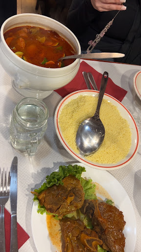 Le patron et la patronne sont très agréable !!nous avons très bien mangé !et c’était tellement bon que nous n’avons pas laissé une miette dans l’assiette ! nos couscous étaient très bon les viandes on du goût !!!!👏 Nous reviendrons sans aucun problème et nous recommandons !mais pas trop sinon après on pourra plus y manger car ils seront toujours complet 😉 Le seul petit regret !ne pas manger dans les assiettes à couscous et la salle (deco) nous fait pas voyager .. Mais ce n’est pas grave je préfère moins voyager mais manger de...