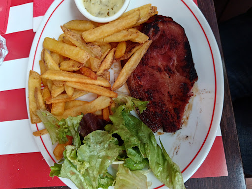 Alors quand nous somme arrivé nous avons était très bien accueilli par Lou serveuse impliquer serviable et drôle (ps merci à Robert pour le mojito un peux plus charger ) elle a pris no commande rapidement(aussi attention à l'un de c'est autre collègue qui lui ne sourier pas trop mais c'est rattraper verd la fin) . Je tien à noté que le lou et joyeuse et danse bien mdr . Bon pour le niveau cuisine on tien a précisé que on a pris deux bavette bleu 360g 1 sans frite et l'autre avec une sauce Échalote. Nous avons ressus de bavette inférieure au poid et les assiette étaient toute les deux avec de la salade et des frite aussi l'une des bavette était couper en deux alors que les cuisson sont bleu .NEAMOIN je tien à dire que la cuisine a fait un bon geste commerciale en nous offrant plus de gramme que prévu. Ensuite niveau organisation de cuisine ça c'est vite et ça a très vite paniquer suite à 4 bon . . . ( je tien à dire que les 4 bon était de mon point de visuel néanmoins étant une personne bigleuse je préfère ne pas le tenir compte pour mon jugement PERSONNEL . Mais plus pour un jugement globale ) . Bon et bien je crois à voir fair le tour