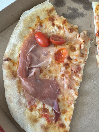 Nous avons été servi de : -Une pizza margarita (dans l’absolue c’est une pizza au fromage m’enfin..) -Une plaque de carton capriosa -De la creme au pate gout st jacque -Des pates avec un décor de 2 gambas -De la crème liquide aux tagliatelles avec un peu moins de 40g de canard