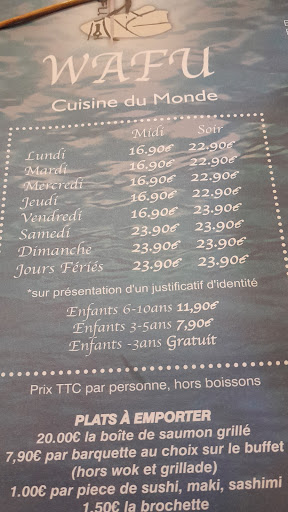 Read moreNous sommes venu manger un soir de semaine vers 21h. A peine installé on vient me demander les boissons alors que mon mari n'était pas à table. Ensuite nous nous dirigeons vers le buffet. J'avais entendu beaucoup de bien de ce buffet d'où notre venue pour le découvrir. Et bien douche froide! Certes il y a beaucoup de choix d'où mes deux étoiles, mais niveau qualité on repassera....beaucoup de choses industrielles, la nourriture était sèche....les fruits de mer sans odeurs, les plats chauds secs, les suchis pareils. Alors certes il était 21h mais pourquoi laisser autant de choix le soir sachant que nous étions 10 clients dans le restaurant? Les crèmes brulées devaient être brulées depuis très longtemps puisque le sucre avait coulé dessus, les pana cotta liquide, pâtisseries industrielles... Et pour le service, pas un sourire, un serveur qui fait la poussière au dessus du buffet, le chariot avec la vaisselle salle et la poubelle qui passe de table en table c'est très bof, on nous passe la serpière à nos pieds alors qu'on est en train de manger, ça veut peut être dire qu'il faut partir!! Alors c'est peut être le concept qui veut ça mais pour le coup ça ne nous correspond pas. Pour le prix avec un choix plus restreint certes, je préfère aller ailleurs mais nous avons voulu tester. Bref plus de 60 euros à deux pour ça et bien nous ne reviendrons pas! J'attendais beaucoup plus de la part d'un buffet qui vient d'ouvrir et de tout le bien qui se...