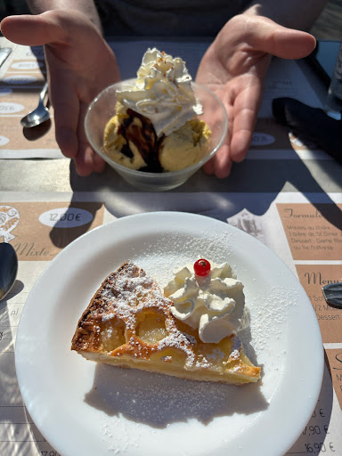 Assez mitigée sur ce resto, arriver à 12h50 ce jour (jeudi 15/08) nous avions réserver, le plat des enfants avait été envoyé à notre arrivé pendant que nous prenions l’apéro, le plat des enfants est arriver à 13h40 après avoir réclamé, et les plats adultes à 14h30 .. Pour avoir à boire il ne faut pas être déshydrater .. On demande une carafe d’eau au bar le monsieur souffle tellement qu’il crache ses poumons, ça ne le fait pas trop .. Mais en attendant les boissons avec la chaleur les enfants avaient soifs ! Ensuite, salade César très bonne, en revanche l’entrecôte a 25€ laisse à désirer, l’os a disparu, l’entrecôte ressemble à un pavé, très épaisse et petite. Mais le serveur nous assure que c’est une entrecôte. Il ne doit pas aller à la boucherie souvent ce monsieur (photo de l’entrecôte en ci-dessous, fan de viande d’abstenir elle fait pitié) .. Rupture de moule à 13h c’est chaud .. La Mousse au chocolat maison a 7€ était dur comme de la pierre (encore congelé?) bref, nous n’y retourneront pas. L’attente se fait pardonner au vu du monde, mais la qualité des repas (sauf la salade César) et l’amabilité du personnel laisse à désirer. (Heureusement le jeune qui cour partout et la jeune brune à longs cheveux sont vraiment sympa, je pense que la direction peut leur donner une prime sans eux nous serions parti avant même d’avoir les repas, surtout la jeune brune très très sympa ! Contrairement à sa collègue plus âgée) à quasi 140€ l’addition pour 4 adultes et 2 enfants nous sommes déçus. Payer ce prix pour ce qu’on a eu bof, surtout avec du personnel qui fait la gueule. L’homme qui a dit « on se tape la honte » non je vous rassure vous ne vous taper pas la honte, un resto remplis c’est difficile à gérer, mais je pense qu’avec un personnel plus compétent et surtout motiver, ce...