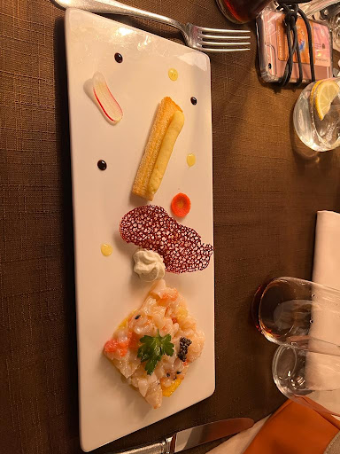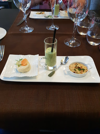 Read moreC'est la 4ème fois que nous nous rendions dans cet établissement, c'est dire si on l'apprécie, néanmoins cette fois ci je suis reparti quelque peu déçu et le peu de monde dans la salle indique peut-être un début d'explication. Cela avait très bien commencé avec un cocktail aux « sureaux » très apprécié et les mises en bouche. Ensuite, mon entrée : « thon rouge mi-cuit » était correct, tout comme les minis burgers pour les convives qui m'accompagnaient. En plat chacun avait pris un met différent : canard et veau pour 2 d'entre eux, rien à redire. Pour la 3ème c'était daurade et pour moi cabillaud. Les assiettes très belles …... mais cela ne fait pas tout. La daurade était un peu trop cuite et sèche avec une purée sèche également et une sauce vraiment « vierge » ... de goût, quand à moi les 2 morceaux de cabillaud avaient une cuisson parfaite, mais étaient gorgés d'eau (ou de bouillon) dégorgeant dans l’assiette rendant la rouille insipide. Bref pour un restaurant se voulant « gastronomique » nous étions quelques peu déçus. Autre point, la longue attente pour les desserts et une chaleur (27°) dans la salle qui nous mettait pas très à l'aide pour une bonne...